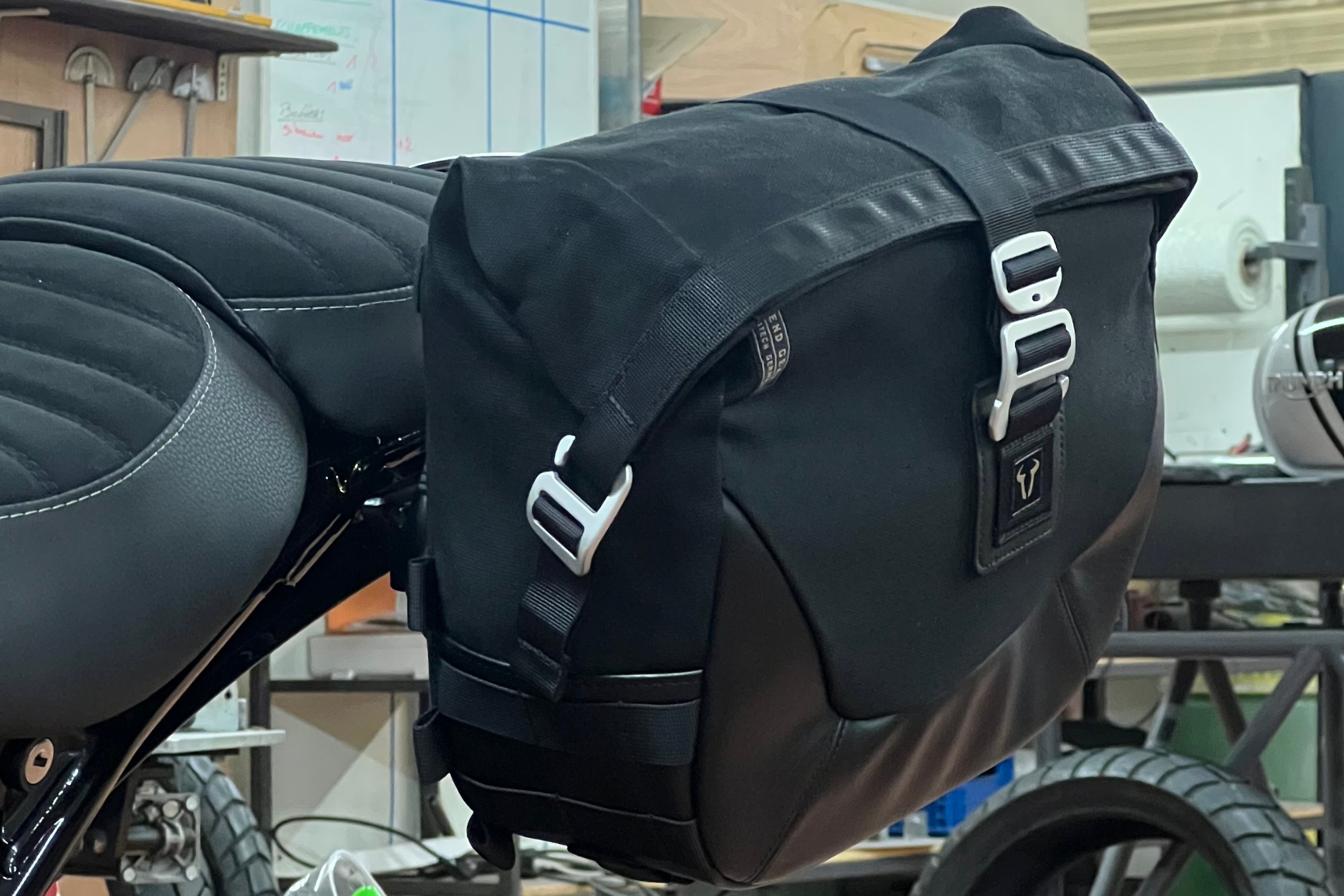 L’installation s’effectue sans modification du cadre, en conservant l’architecture d’origine. Ce kit s’adresse aux utilisateurs souhaitant rendre leur Triumph 400 plus polyvalente, capable d’un usage quotidien comme de déplacements plus longs, sans compromettre son identité visuelle.