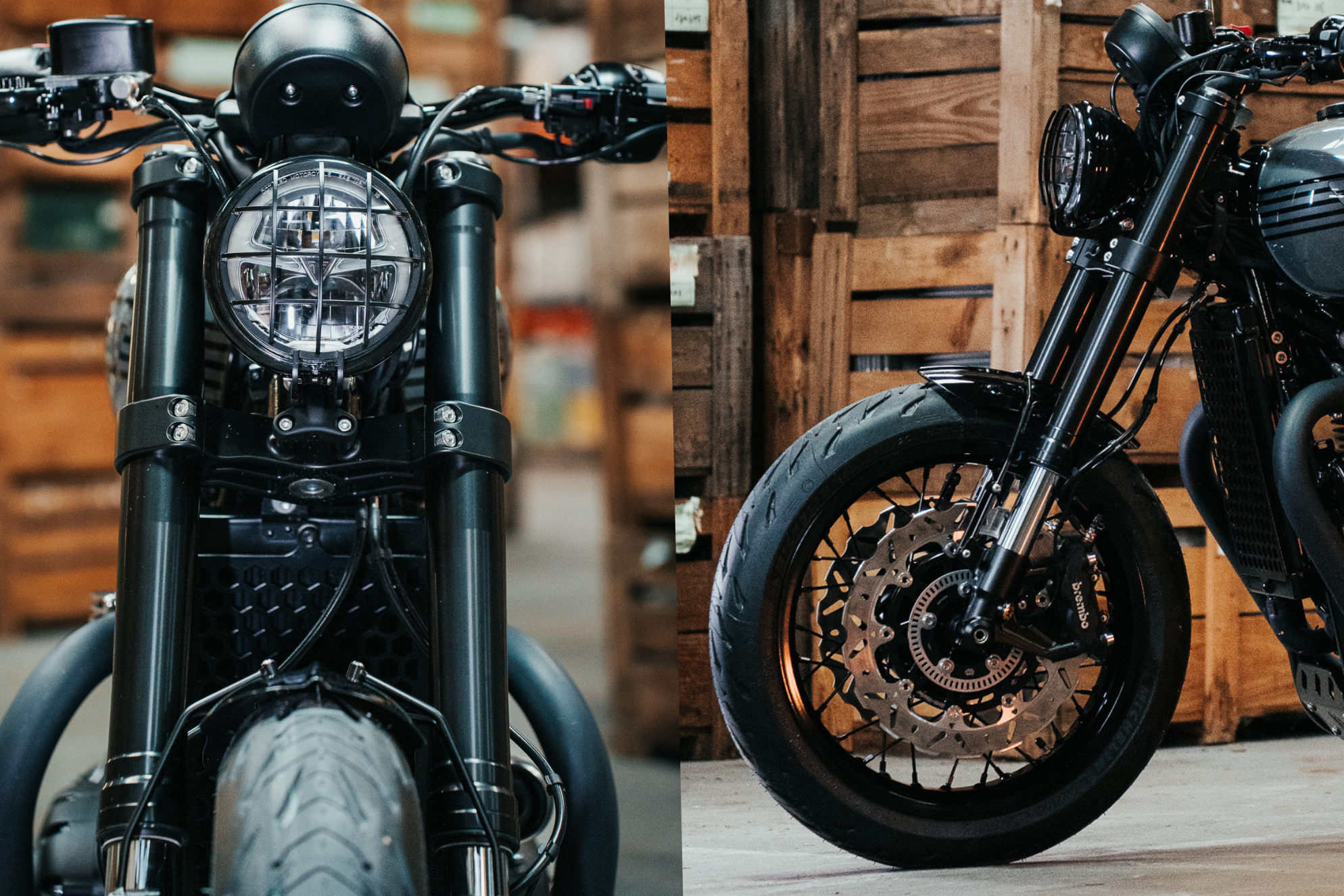 Ce kit transforme entièrement le train avant de la moto. Il améliore le look Bobber avec un avant plus large et plus massif, augmente la stabilité, améliore la réactivité de la suspension et apporte un freinage plus puissant grâce aux étriers Brembo et aux disques Moto-Master Wave.